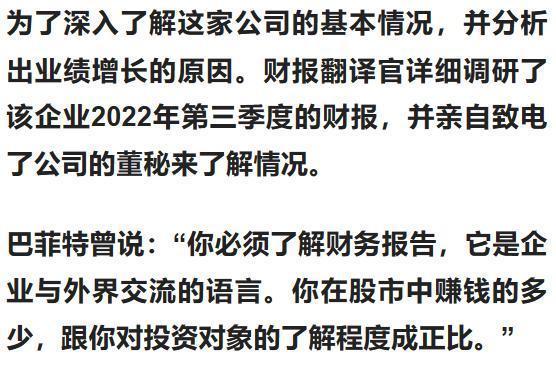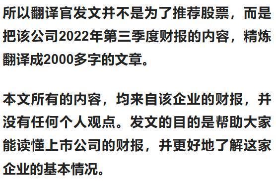 但是在2022年第三季度,该企业的投资收益出现了大幅度的增长,投资收益是净利润中的水分会迷惑投资者,在本文的最后翻译官会详细介绍这些细节。