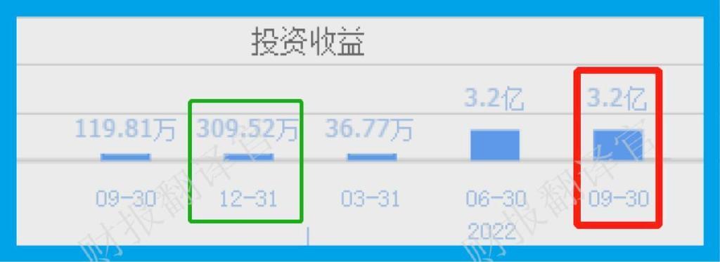 2021年第三季度,该企业的投资收益只有119.81万元。而到了2022年第三季度,这家公司的投资收益就达到了3.2亿元,同比大幅增长了26,615%。