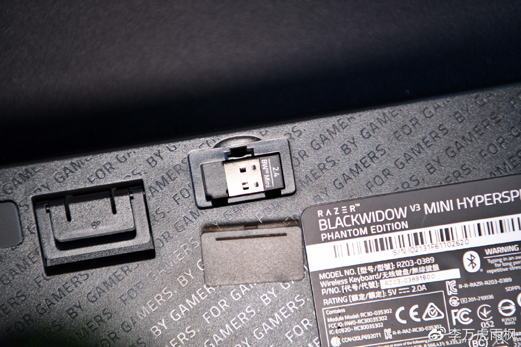 搭配雷蛇的无线鼠标非常有感觉,而且支持通过1个2.4G接收器同时连接键盘和鼠标到电脑的设计,这一点确实很有创意,减少了到处都是2.4G接收器的尴尬。