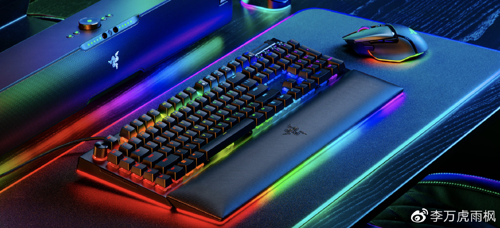 由于这款键盘采用了半透明的侧面设计的ZBS布丁键帽,经过专门设计的磨砂侧面保证了更高的透光性,从而保证了雷蛇RGB幻彩光效的发挥。