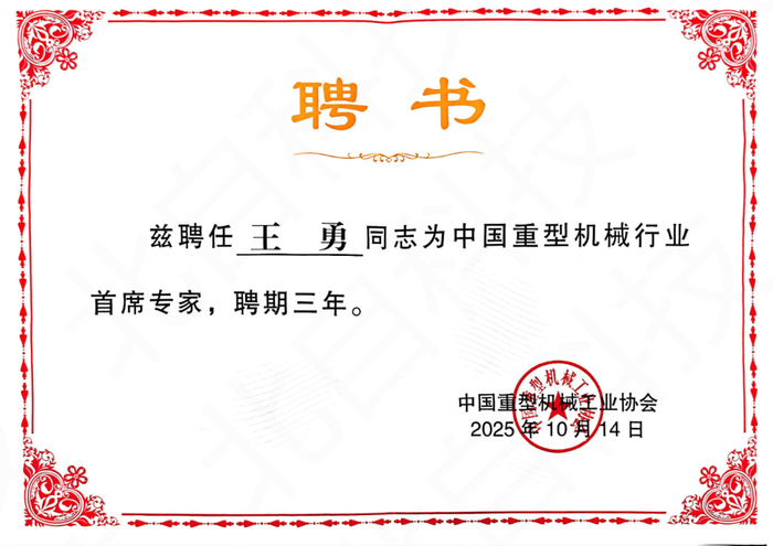大会举行了首批重型机械行业高级技术专家聘任仪式,北自科技董事、总经理王勇凭借其在重型机械领域的卓越贡献、深厚的技术积淀以及行业影响力,获聘中国重型机械行业首批“首席专家”。