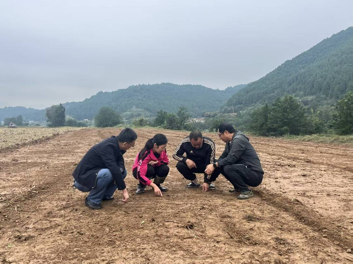 农技专家察看播种情况