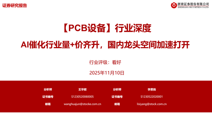 来源:浙商机械团队2025年11月11日外发报告《【PCB设备】行业深度PPT:AI催化行业量+价齐升,国内龙头空间加速打开》