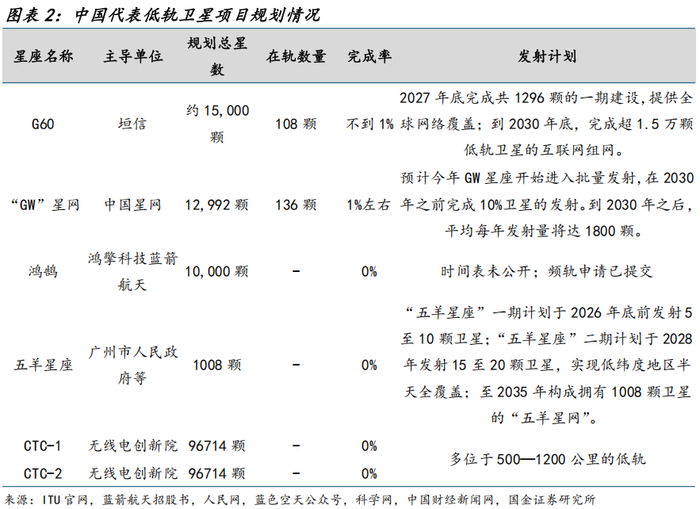 中国规划两大低轨卫星星座,星网、G60两大星座将合计至少发近2.7万颗低轨卫星。目前美国星链已经抢占低轨轨道资源15%以上的份额,国内星网、垣信提出远期超过万颗发射数量,参与低轨资源争夺战。