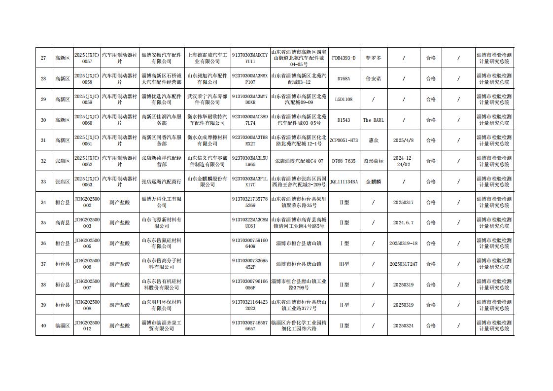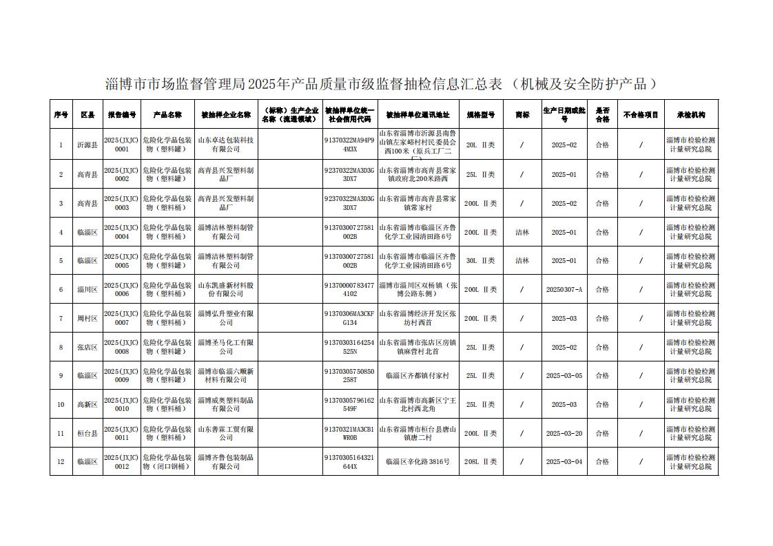 淄博市市场监督管理局2025年产品质量市级监督抽检信息公示(机械及安全防护产品)